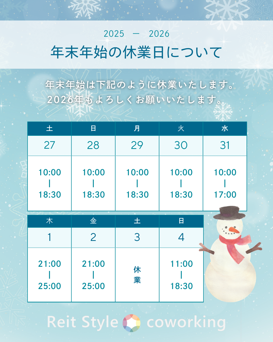 日頃よりReit Style・coworkingをご利用いただき、誠にありがとうございます✨